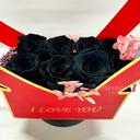 Designed with premium preserved roses, this elegant heart-shaped stand features a bold red frame and a romantic “I Love You” message, making it a perfect symbol of eternal love.
